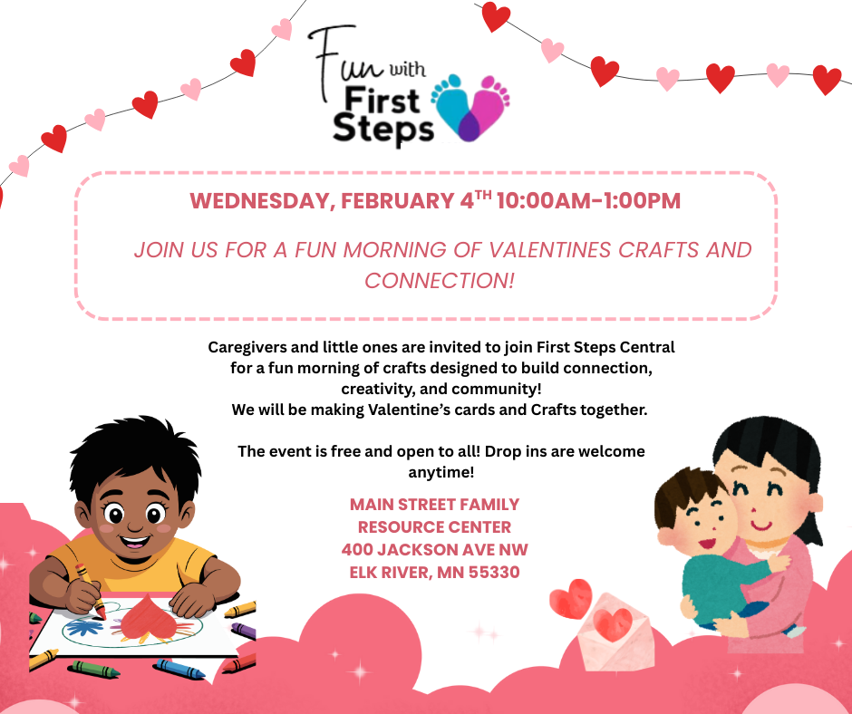 Join First Steps Central for a morning of crafts and connection! We will be making Valentine's Cards and crafts together. Drop-ins are welcome anytime between 10:00am-1:00pm! Don't forget to stop […]