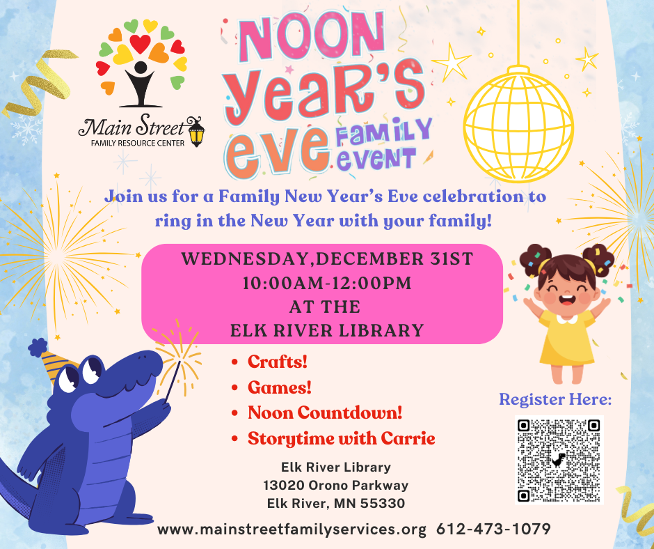 ๐ Noon Yearโs Eve Family Celebration! ๐ Hosted by the Family Resource Center at the Elk River Library Ring in the New Year early with a celebration made just for […]